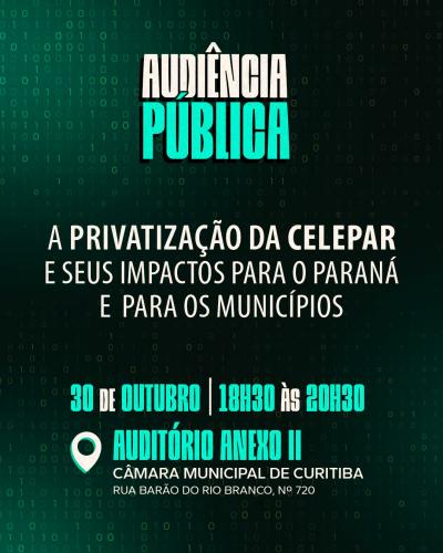 O SINDPD-PR convida todos e todas a participarem da Audiência Pública que se realizará dia 30/10/2025 as 18h30 onde será discutido o processo de privatização da Companhia de Tecnologia da Informação e Comunicação do Paraná – CELEPAR.