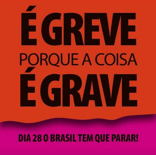 É GREVE porque a coisa e GRAVE. Dia 28 todos trabalhadores na luta.